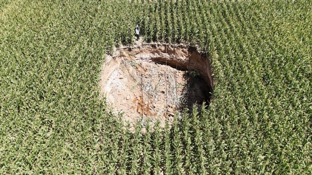 Belde sınırlarındaki mısır tarlasında sulama boruları toplandığı sırada obruğu görenler, durumu yetkililere bildirdi. İhbar üzerine bölgeye gelen İl Afet ve Acil Durum Müdürlüğü ekipleri, obruk çevresinde incelemede bulundu.