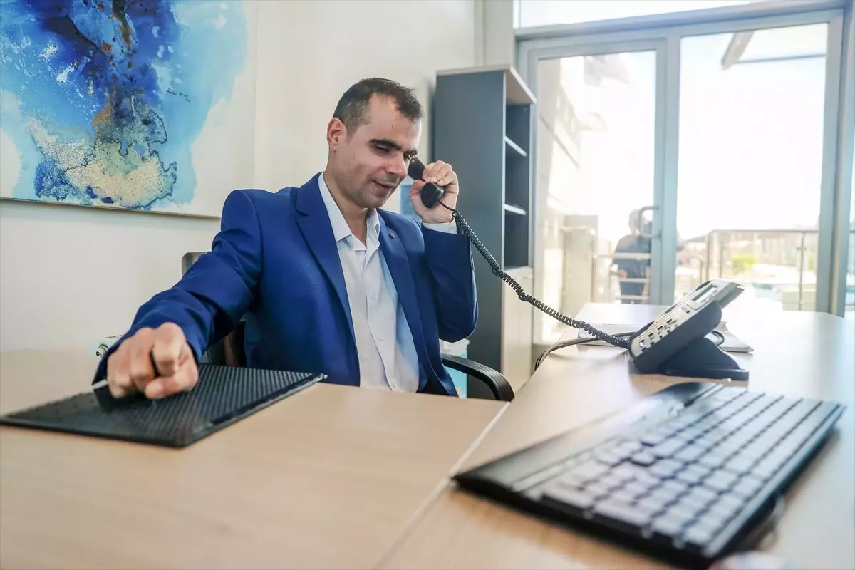 Konya’da iki üniversite mezunu 32 yaşındaki görme engelli Mehmet İpek, hafızasıyla rehbere ihtiyaç duymadan Konya Ticaret Odası (KTO) Karatay Üniversitesinin çağrı merkezinde telefon trafiğini yönetiyor.