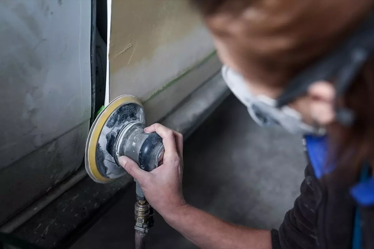 Maslak’taki Atatürk Oto Sanayi Sitesi’nin Güler ustası, elinde zımpara ve boya tabancasıyla kendisine emanet edilen araçları ilk günkü haline döndürüyor.