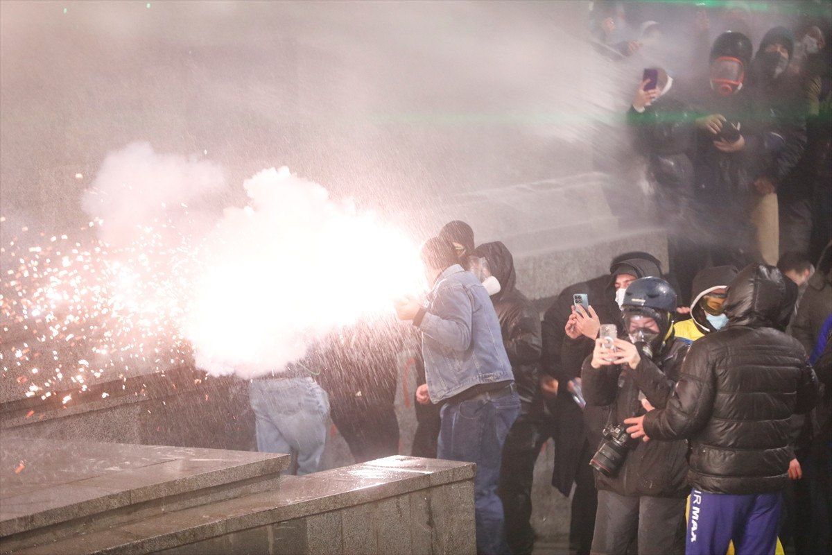 Protestocuların güvenlik güçlerine havai fişek ve yabancı madde atmasıyla tansiyon bir kez daha yükseldi.
