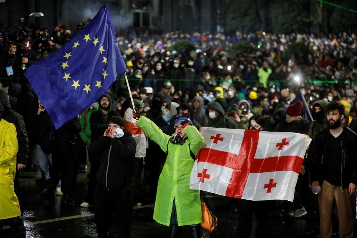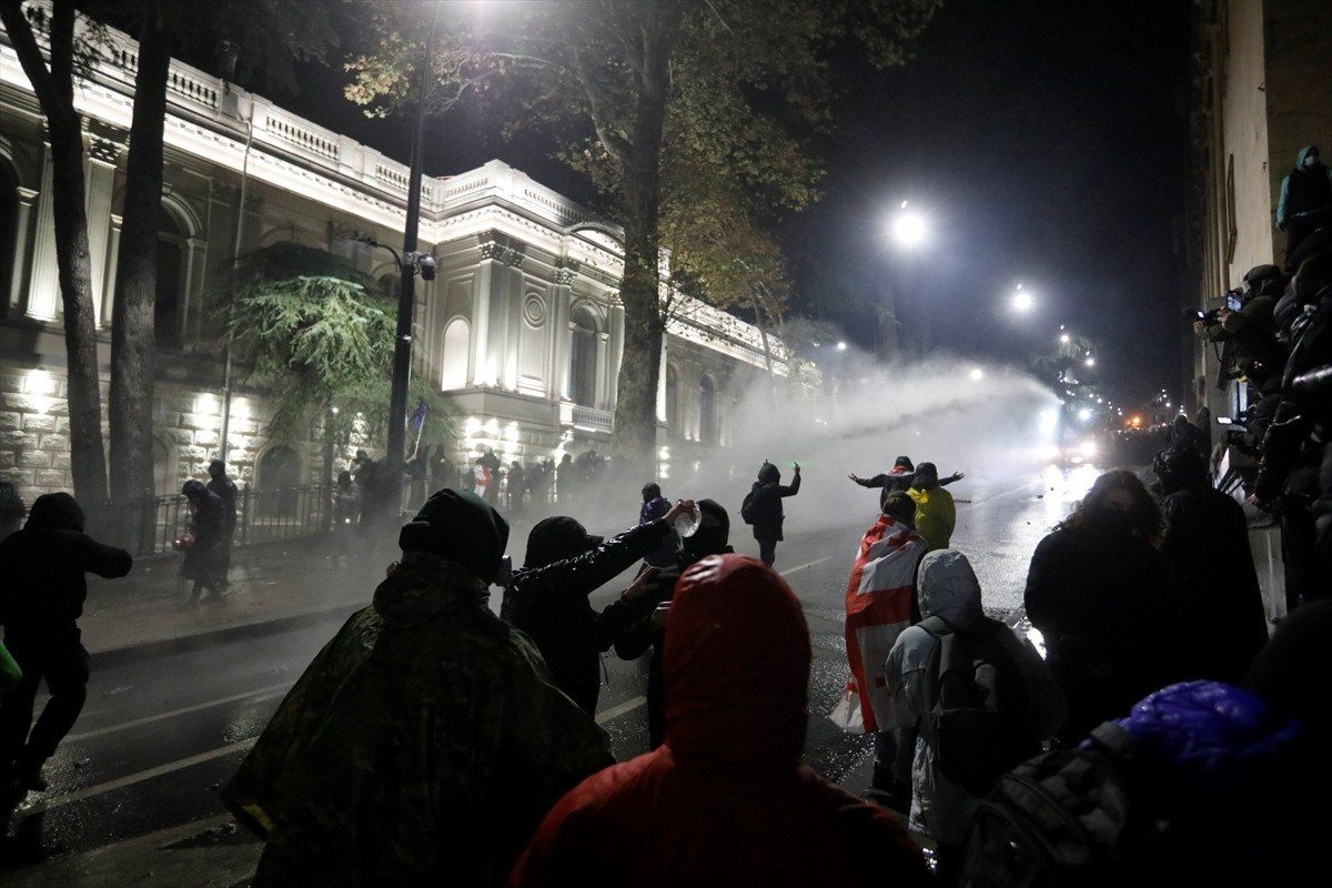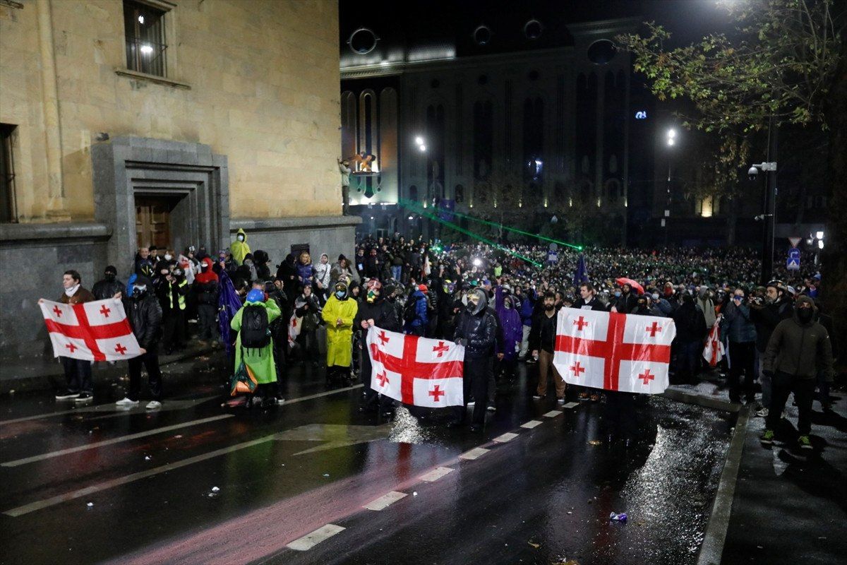 Gürcistan’da Başbakan İrakli Kobakhidze hükümetinin AB’ye katılım müzakerelerini 2028 yılına kadar askıya alma kararına karşı düzenlenen protestolar ikinci günde devam etti.