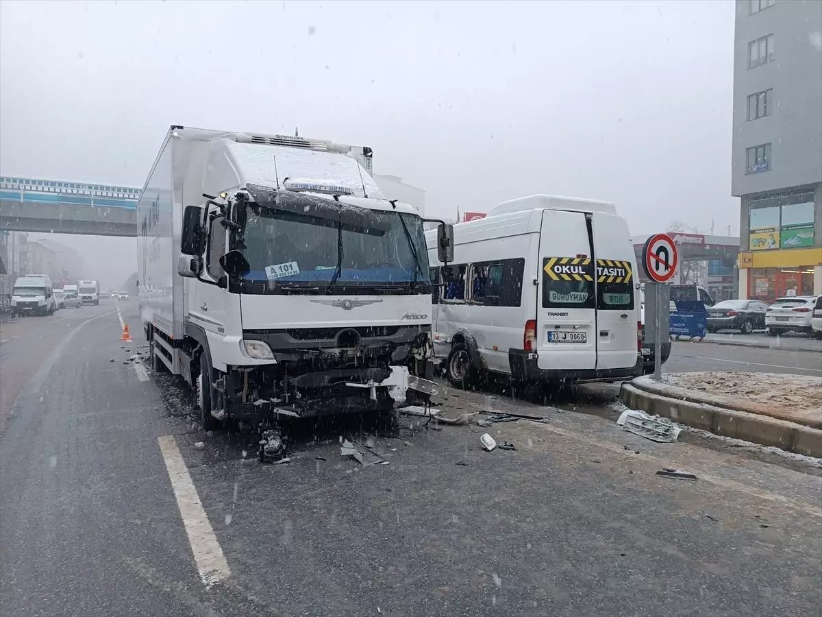 Çarpmanın etkisiyle minibüs de 13 DC 224 plakalı kamyonete çarptı.