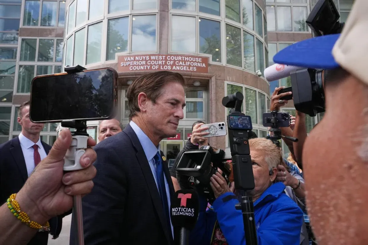 Los Angeles Bölge Savcısı Nathan Hochman, Van Nuys Adliyesi’nin dışında medya mensupları tarafından çevrelendi.