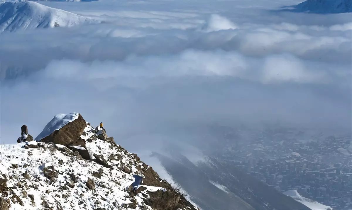 Kayak merkezi yolunda, bulut tabakasının karlı dağlarla oluşturduğu manzaraya karşı zaman geçiren Elazığlı doğasever Tahir Ağgedik, AA muhabirine, bu manzarayı yaklaşık 30 yıl önce Bolu’da gördüğünü söyledi.