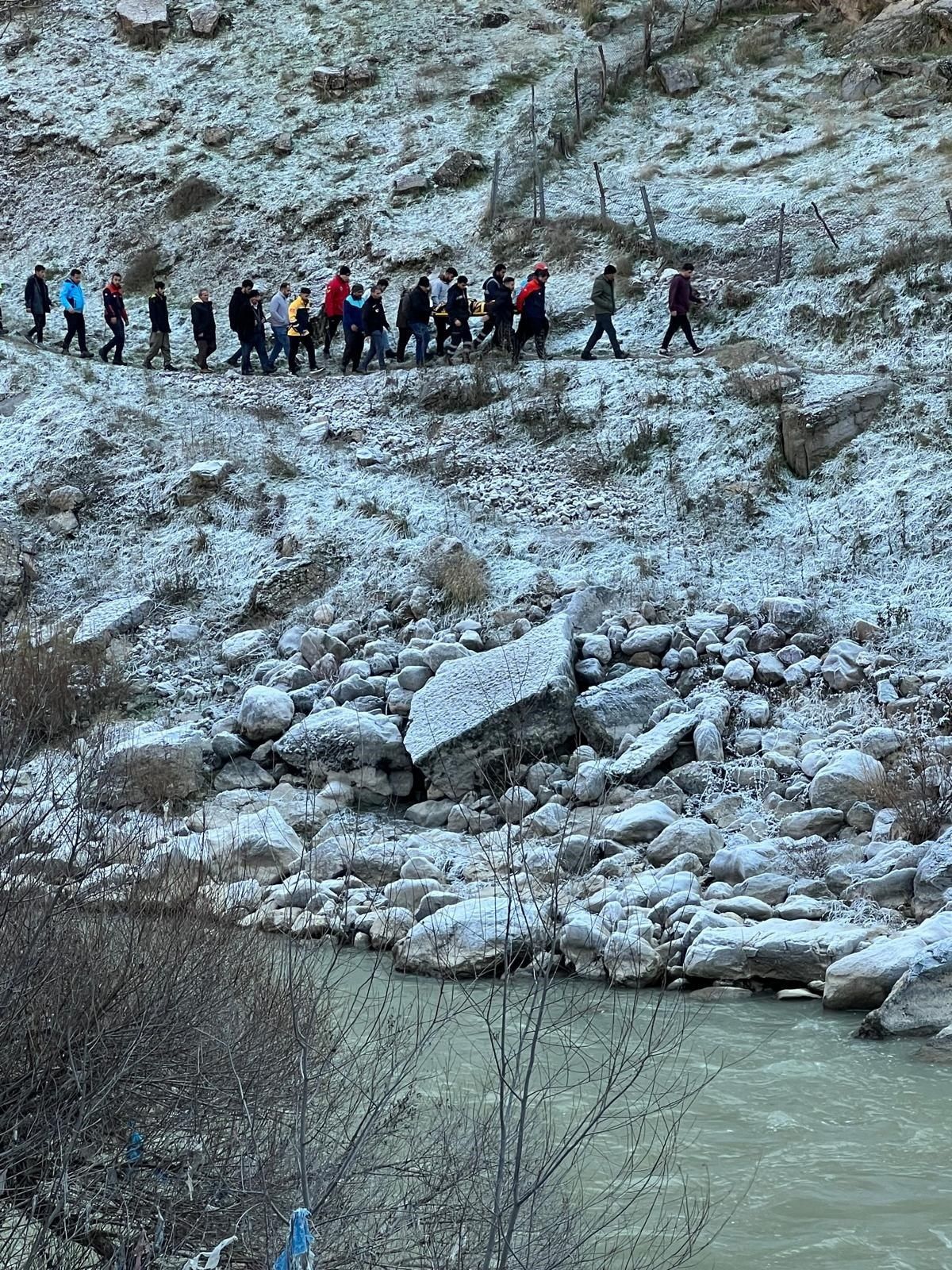 Erol Günay isimli gencin cenazesi, AFAD ekiplerinin zorlu arazi koşullarında yaptığı çalışmalarla bulundu ve Hakkari Devlet Hastanesine kaldırıldı.