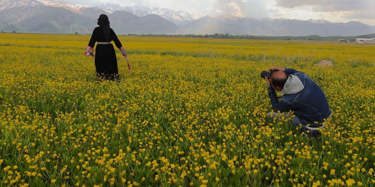 “Ortam harika. Çiçekler, karlı dağlar, yeşilin tonları… Biz de bu güzelliğin içindeyiz. Bugün yöresel kıyafetli arkadaşları ve ot toplayan kadınları görüntüledik. Bol bol fotoğraf çektik. Buradaki çiçekler yaklaşık 2 hafta kalıyor. Kuşlar da buraya geliyor. Bazı bölgelerde ters laleler de var. Buranın en güzel mevsimi ilkbahar. Birçok kişi gelip burada fotoğraf çekiyor. Burada doğal stüdyo oluşmuş.“
