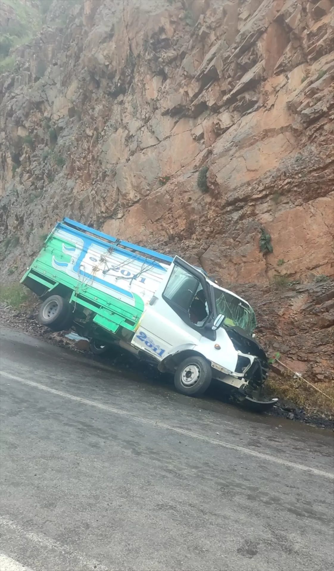 Hakkari- Şırnak kara yolundaki Çığlı köyü yakınında Muhammed Özbeğ’in kullandığı kamyonet, yamaca çarptı.