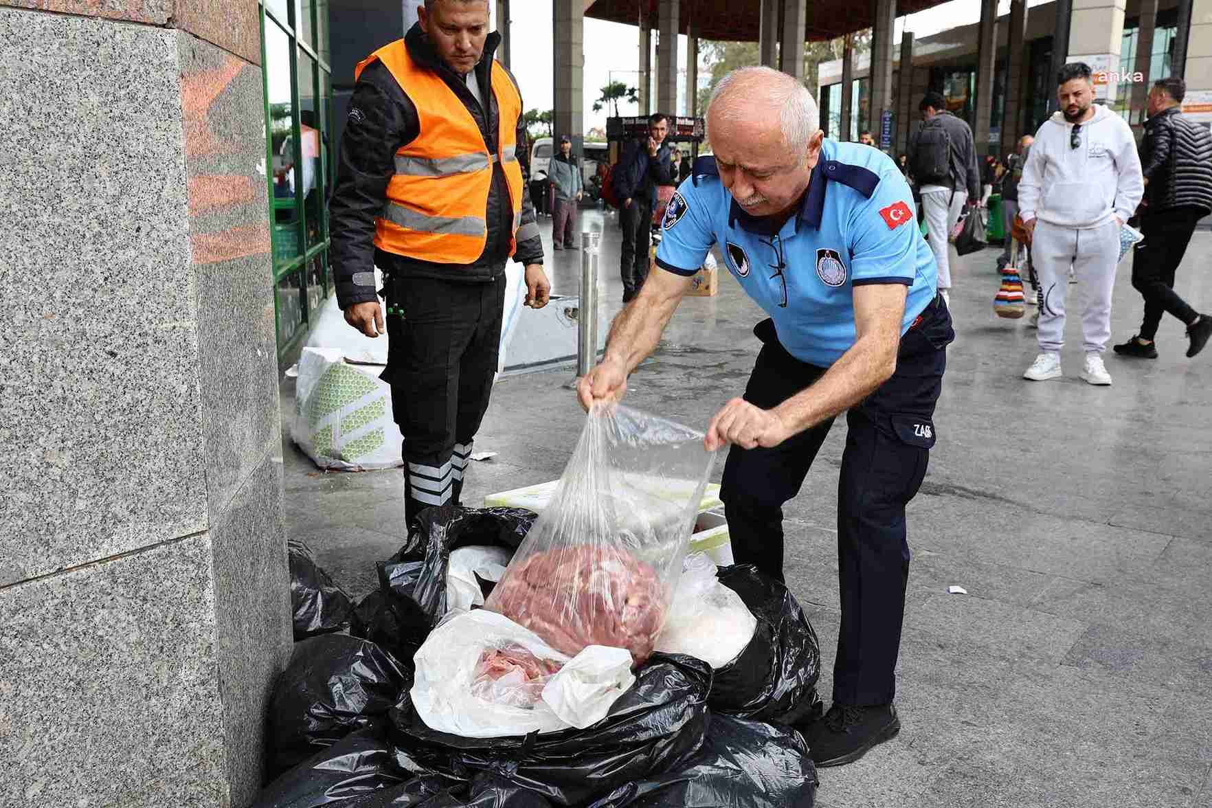 Zabıta ekipleri ve güvenlik görevlileri tarafından Antalya Şehirlerarası Otobüs Terminali’nde yapılan denetimler sırasında bir otobüs firmasından çöp poşetleriyle şüpheli malzeme taşındığı fark edildi. Poşetleri kontrol eden ekipler, sağlıksız koşullarda taşınan 9 adet çöp poşetinde yaklaşık 300 kilogram et buldu.