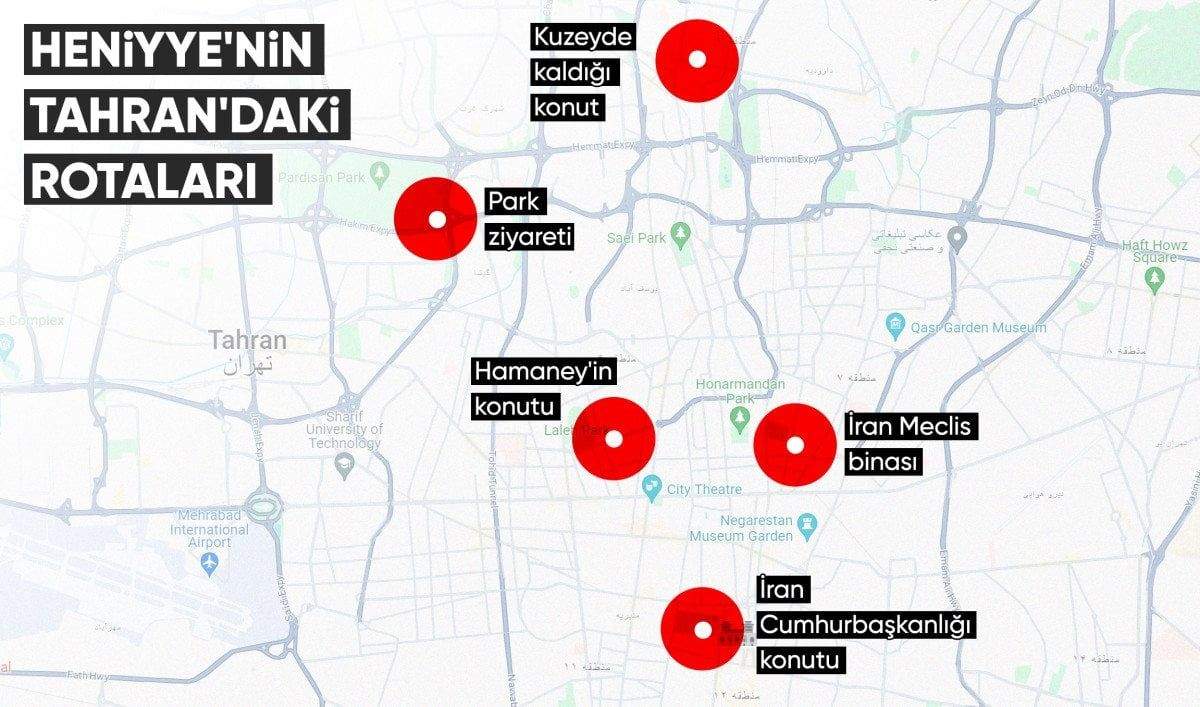 Heniyye’nin kaldığı Devrim Muhafızları Ordusu’nun korumasındaki gaziler için hizmet veren konutun, İran Cumhurbaşkanlığı konutuna yalnızca 150 metre uzaklıkta olduğu öğrenildi.