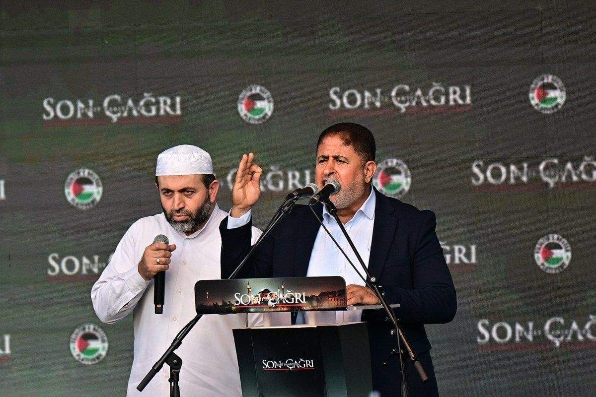 Yaklaşık 200 bin kişi Ayasofya Meydanı’nda toplanırken İsrail’e lanet, Filistin’e özgürlük sloganları atıldı.