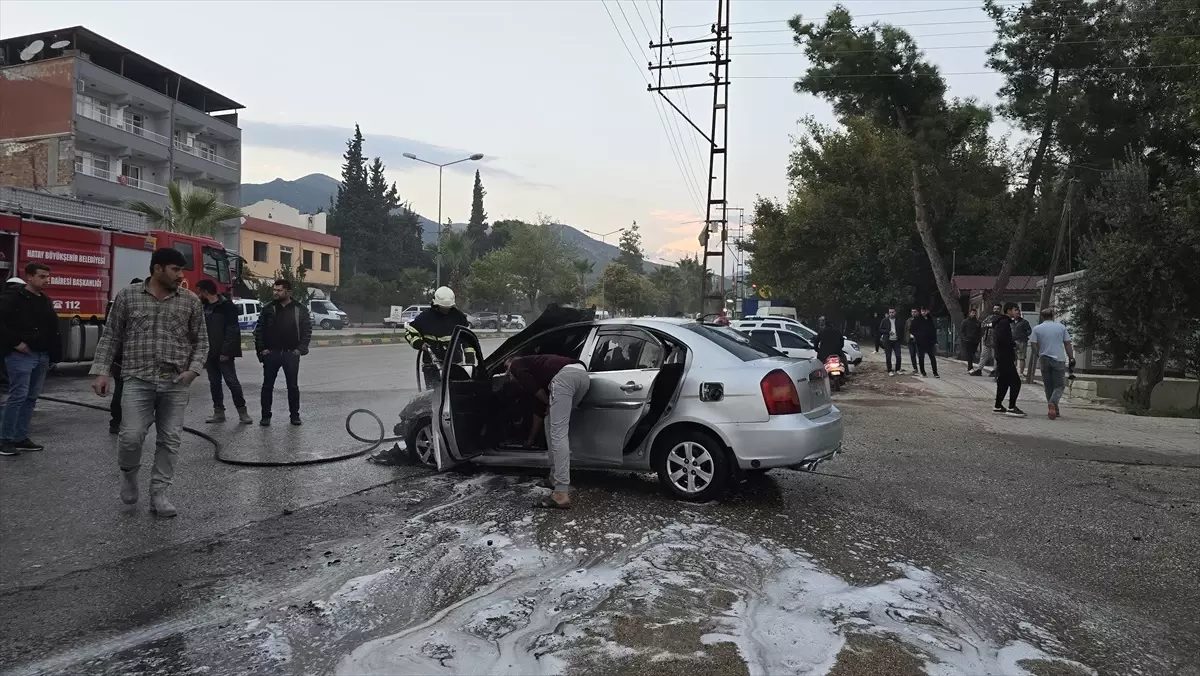 Hatay’ın Hassa ilçesinde seyir halindeki otomobilde çıkan yangın söndürüldü.