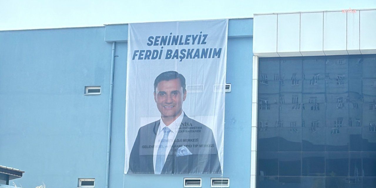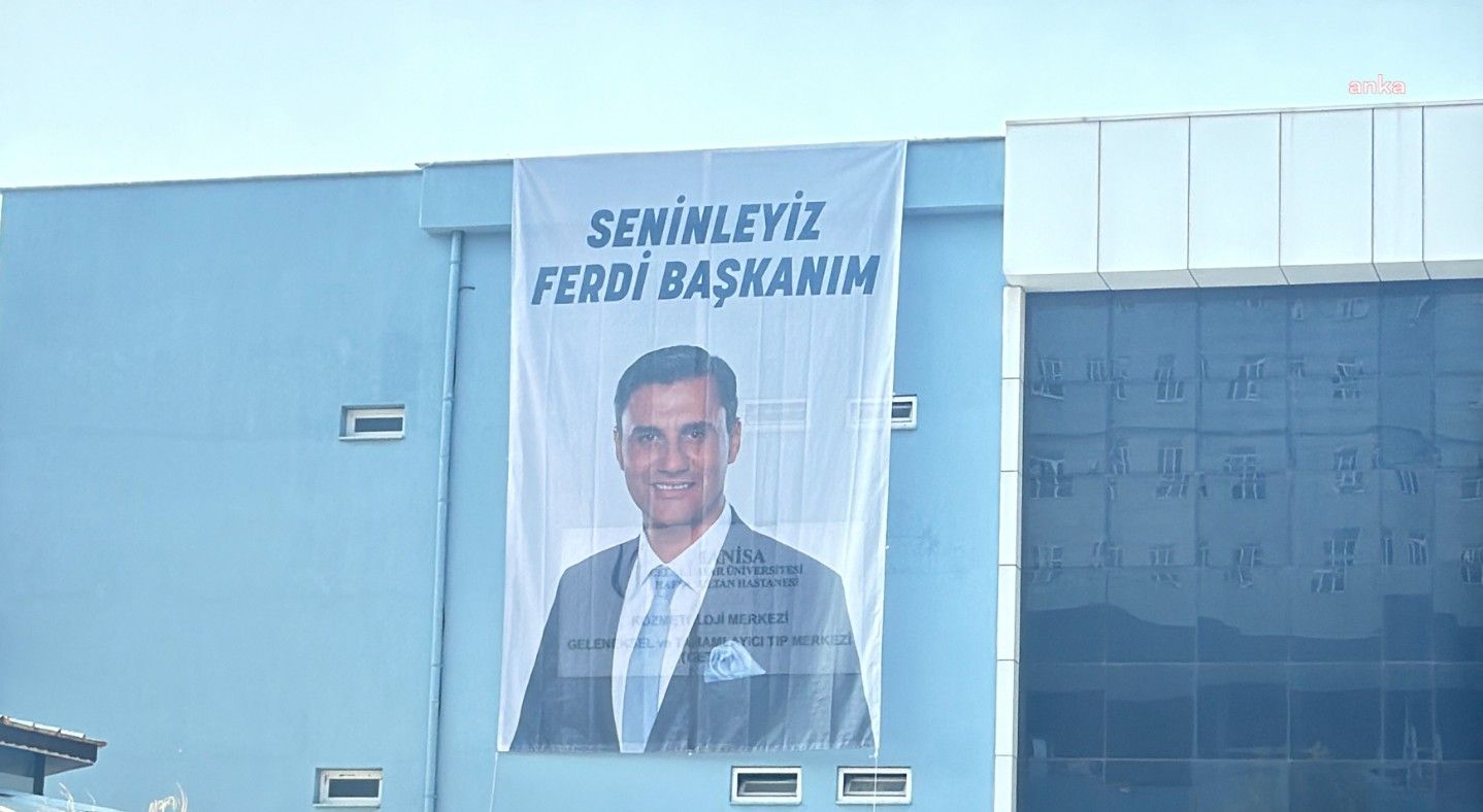 HASTANE DUVARINA “SENİNLEYİZ FERDİ BAŞKANIM” PANKARTI ASILDI