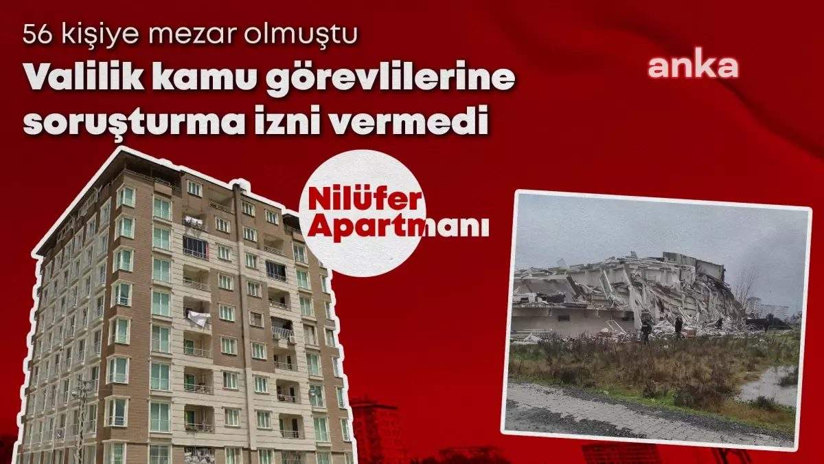 (HATAY) – Hatay Valiliği, 6 Şubat depremlerinde 56 kişinin yaşamını yitirdiği Nilüfer Apartmanı’yla ilgili davada, 9 kamu görevlisi hakkında soruşturma izni vermedi. Nilüfer Apartmanı’nda yaşamını yitirenlerin avukatlarından Naim Eminoğlu, karara itiraz edeceklerini söyledi.