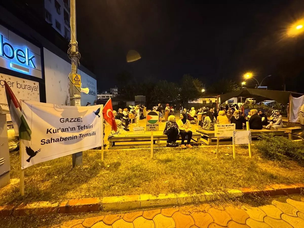 Dörtyol ilçesinde de Sanayi Mahallesi’nde bir araya gelen katılımcılar, İsrail’in Küresel Sumud Filosu’na saldırısına tepki göstererek, oturma eylemi gerçekleştirdi.