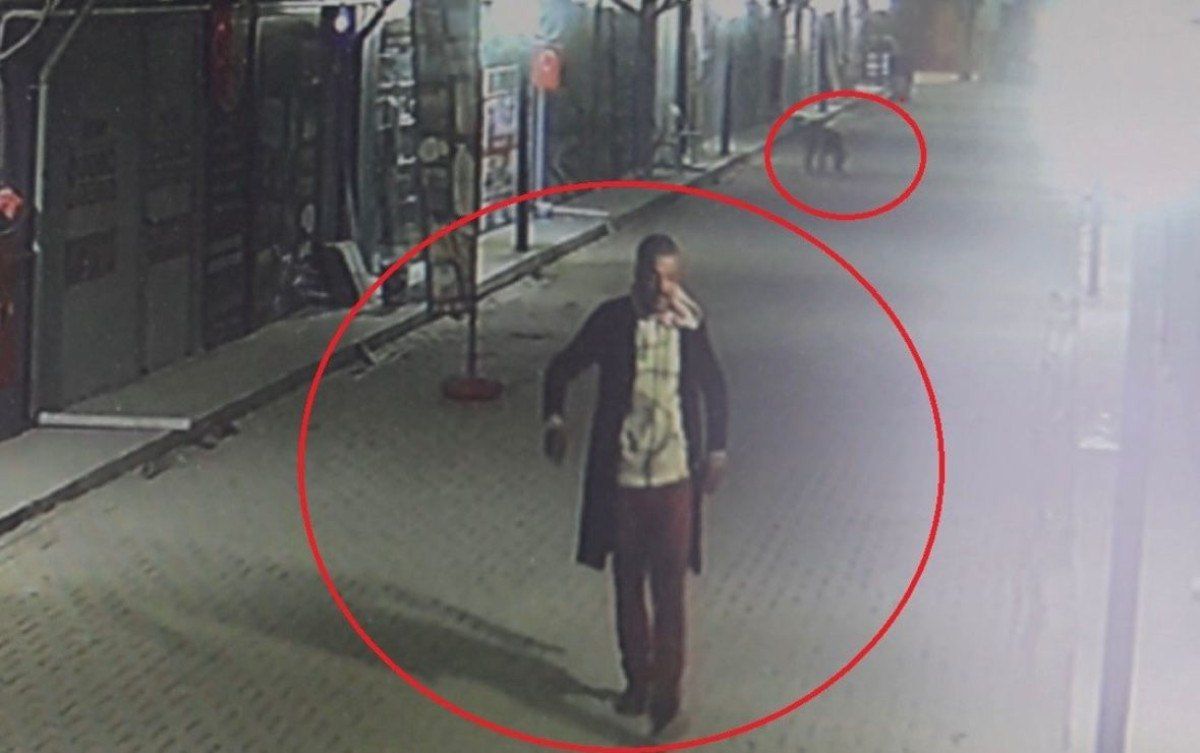 Güvenlik kamerası görüntülerini izleyen esnaf, kimliği belirsiz bir kişinin yanında 3 sokak köpeğiyle geldiğini ve iş yerlerinin etrafında dolaştığını gördü.