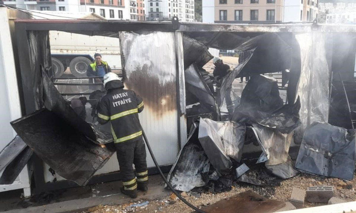 İskenderun ilçesinde şantiye personelinin kaldığı konteyner, yanarak kullanılmaz hale geldi.