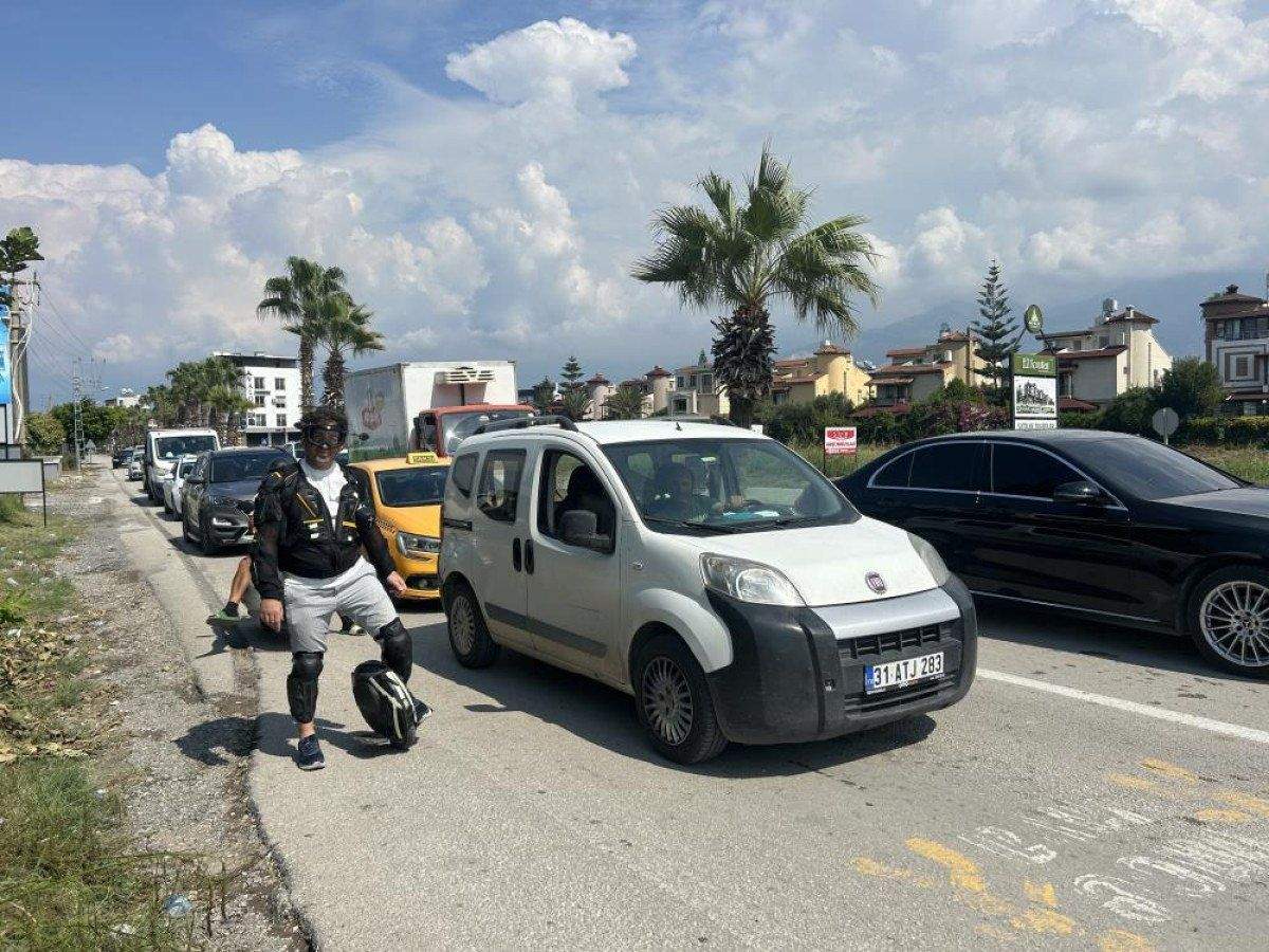 Hatay’ın İskenderun ilçesinde yaşayan 42 yaşındaki Vedat Akrilik, trafikte herkesin ilgisini çekiyor.