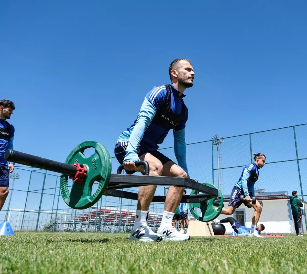 Bordo-beyazlılar sabah saatlerinde yaptığı saha antrenmanıyla çalışmalarına devam etti. Teknik direktör Murat Şahin yönetiminde yapılan ve 1 saat 45 dakika süren antrenmanda ısınmanın ardından sahada kuvvet ve dayanıklılık çalışması, 5’e 2 top kapma ve dar alan çalışması gerçekleştirildi.