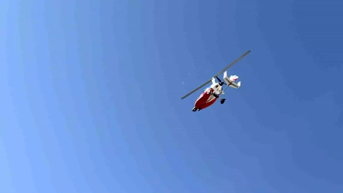 Afyonkarahisar İl Jandarma Komutanlığı, trafik düzen ve güvenliğinin sağlanması amacıyla karayollarını cayrokopter ile havadan denetledi.