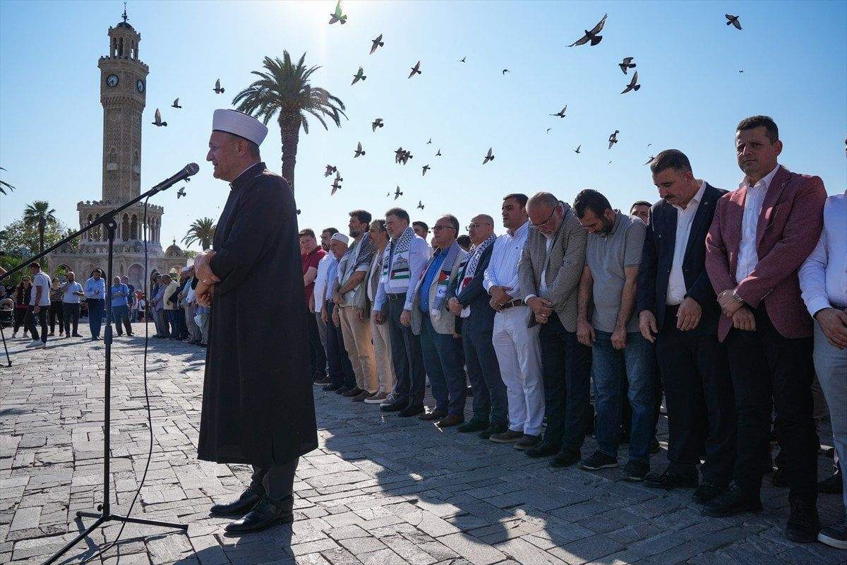 İran’ın başkenti Tahran’da suikasta uğrayan Hamas Siyasi Büro Başkanı İsmail Heniyye için İzmir’deki Konak Meydanı’nda bulunan Konak Yalı Camiinde dua edildi, gıyabi cenaze namazı kılındı.