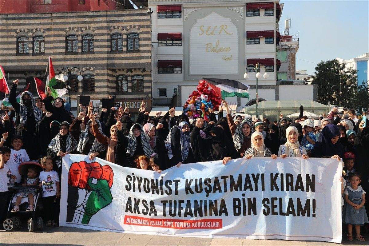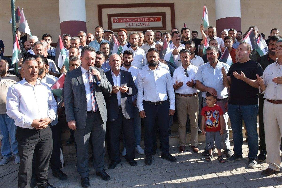 Vatandaşlar sık sık tekbir getirip İsrail aleyhine slogan attı.