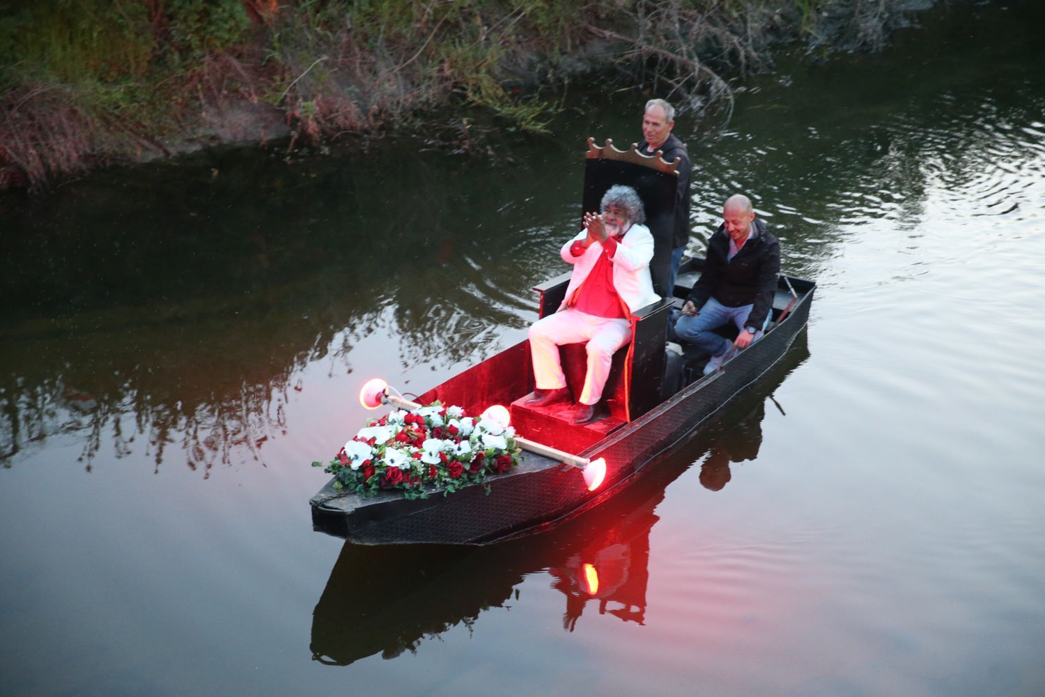 Elinde meşalelerle ve çiçeklerle süslü kayığa binen çeribaşı Fikri Ocak, nehir üzerinden alana gelerek katılımcıları selamladı, baharın ve Hıdırellez’in gelişini kutladı.