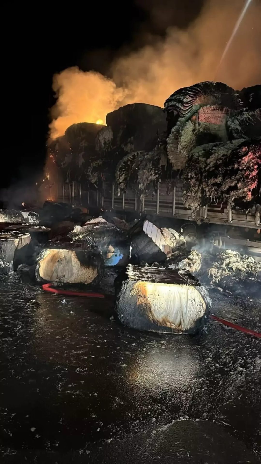 Şanlıurfa’nın Hilvan ilçesinde pamuk yüklü tırda çıkan yangın itfaiye ekiplerince söndürüldü.