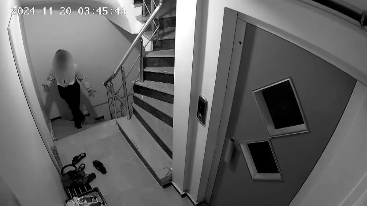 Arnavutköy'de bir apartmana hırsızlık için giren iki kişi, dairenin önünde aradıkları ayakkabıyı görünce sevindi. O anlar güvenlik kamerasına yansıdı.