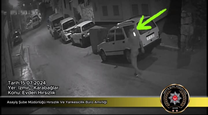 Karabağlar ilçesinde meydana gelen 5 ayrı “evden hırsızlık” olayı ile ilgili Karabağlar İlçe Emniyet Müdürlüğü ve Asayiş Şube Müdürlüğü Hırsızlık ve Yankesicilik Büro Amirliği ekiplerince yapılan çalışmalarda; olayların şüphelisinin 43 yaşındaki E.A. olduğu tespit edildi.