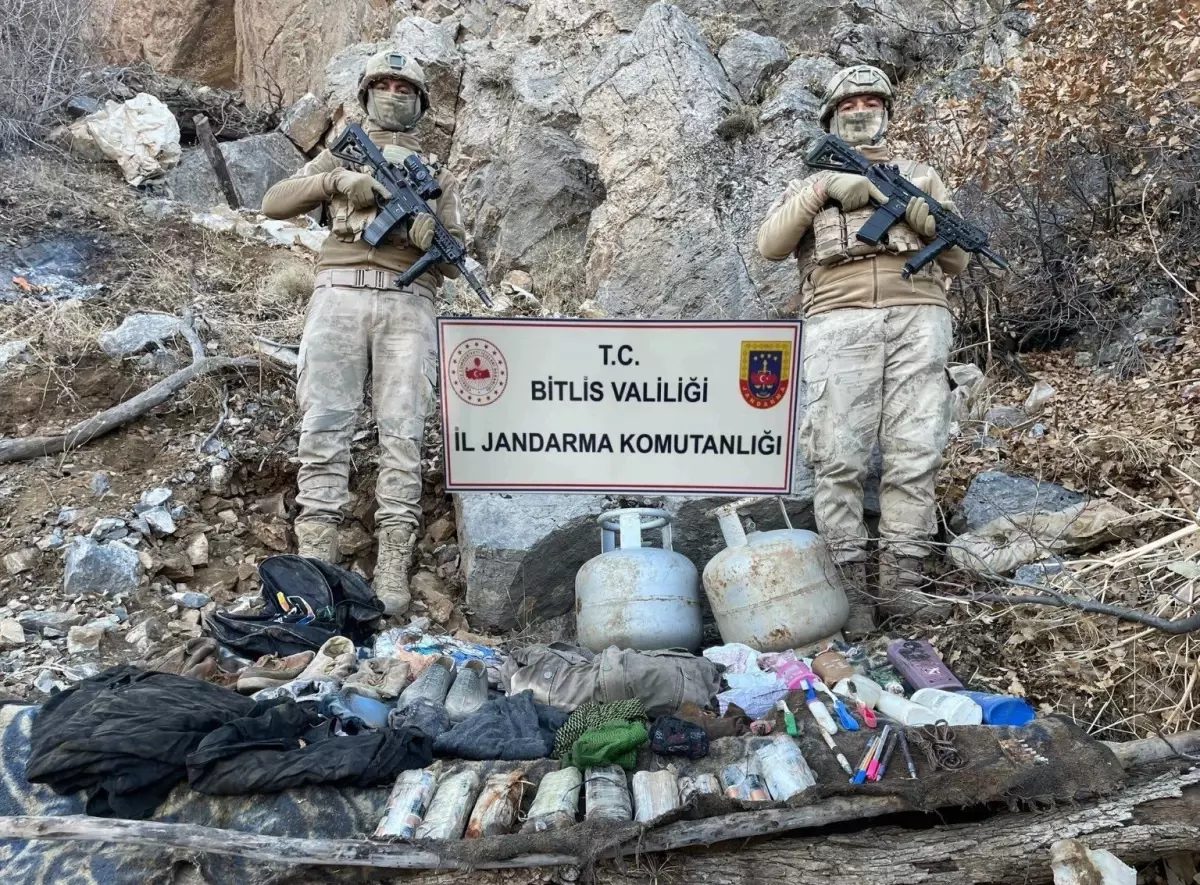 BİTLİS'in Hizan ilçesi kırsalında jandarma ekiplerinin düzenlediği operasyonda, bölücü terör örgütünce kullanıldığı belirtilen sığınak ve barınma alanlarında çok miktarda yaşam malzemesi ve örgütsel doküman ele geçirildi.