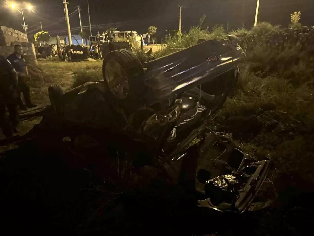 Iğdır’da yola atlayan köpeğe çarpmamak için manevra yapan sürücü, aracının direksiyon hakimiyetini kaybedince yaklaşık 50 metre uçarak yol kenarındaki kanala düştü.