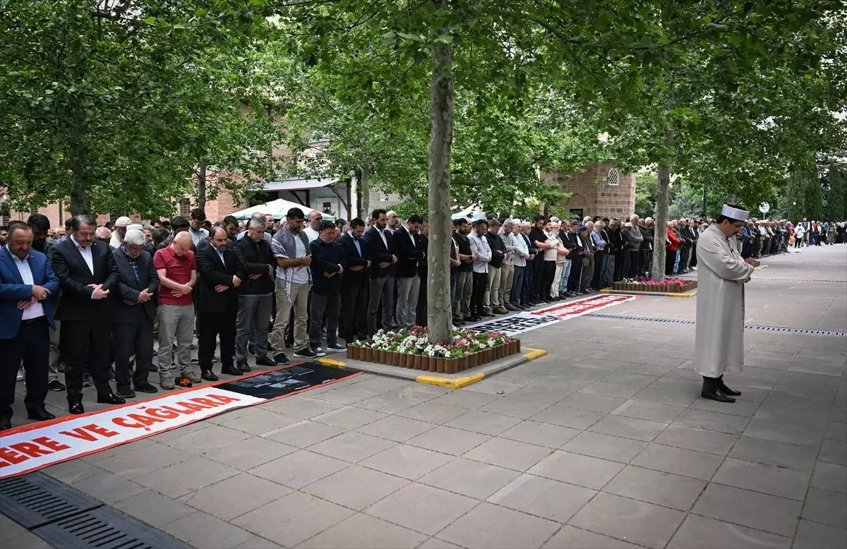 Ankara Filistin Dayanışma Platformunun çağrısıyla Hacı Bayram Veli Camisi’nde cuma namazı sonrası bir araya gelen grup, gıyabi cenaze kıldı.
