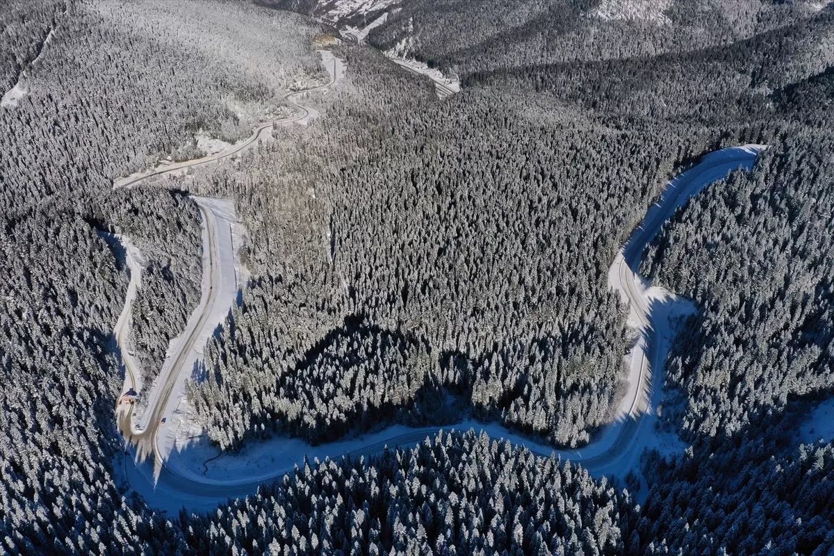 Kastamonu'da, Ilgaz Dağı Milli Parkı karla kaplandı, havadan muhteşem görüntüler elde edildi.
