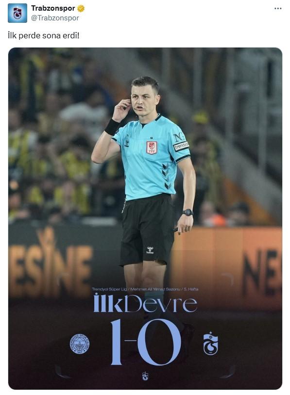 Trabzonspor, Fenerbahçe maçının devre arasında hakem Ozan Ergün'ün fotoğrafını paylaşarak, "İlk perde sona erdi!" ifadelerini kullandı.