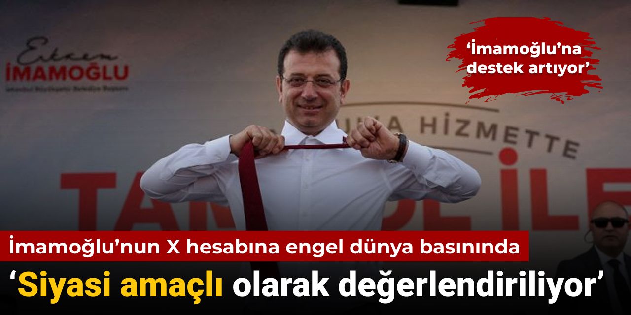 Türkiye’de birçok tepkiye neden olan karar, dünya basınında da yer buldu. Dünya basını, İmamoğlu’nun X hesabının kapatılmasını “Erdoğan’ın rakibi”, “Kamuoyu yoklamaları, İmamoğlu’na desteğin Erdoğan’dan daha fazla arttığına işaret ediyor” gibi ifadelerle okuyucularına duyurdu.