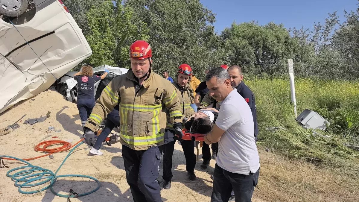 Kaza, saat 09.30 sıralarında İnegöl Organize Sanayi Bölgesi Havaalanı Caddesi’nde meydana geldi. Tekstil Sokak’tan gelen Fahrettin A. (31) yönetimindeki 16 Z 9027 plakalı minibüs, Havaalanı Caddesi’ne doğru giden Furkan D. (31) idaresindeki 34 ELB 037 plakalı otomobile yandan çarptı. Yaklaşık 20 metre sürüklenen araçlardan minibüs takla attı. Kazada, 2 sürücü ile otomobildeki Mine D. (28) yaralandı.
