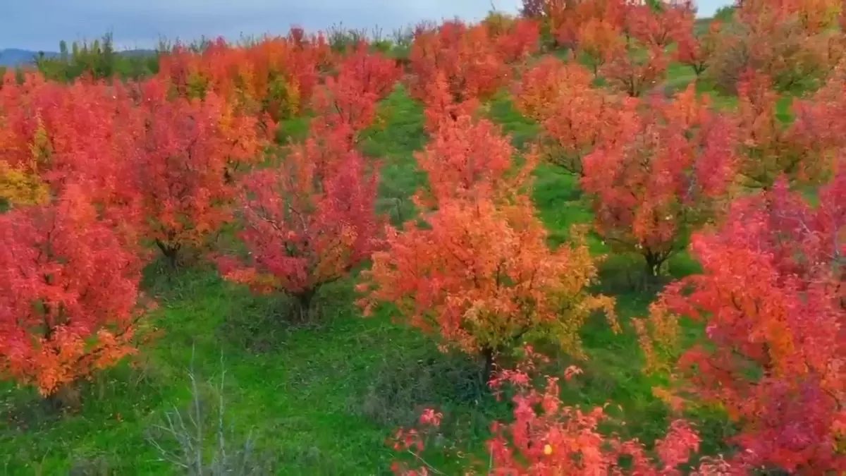 BURSA’nın merkez dışındaki en büyük, Güney Marmara’nın ise nüfus bakımından ikinci büyük ilçesi olan İnegöl’de, sonbahar renkleri ile güzel görüntüler oluştu. Sarı ve yeşilin tonlarına bürünen meyve bahçeleri dronla havadan görüntülendi.