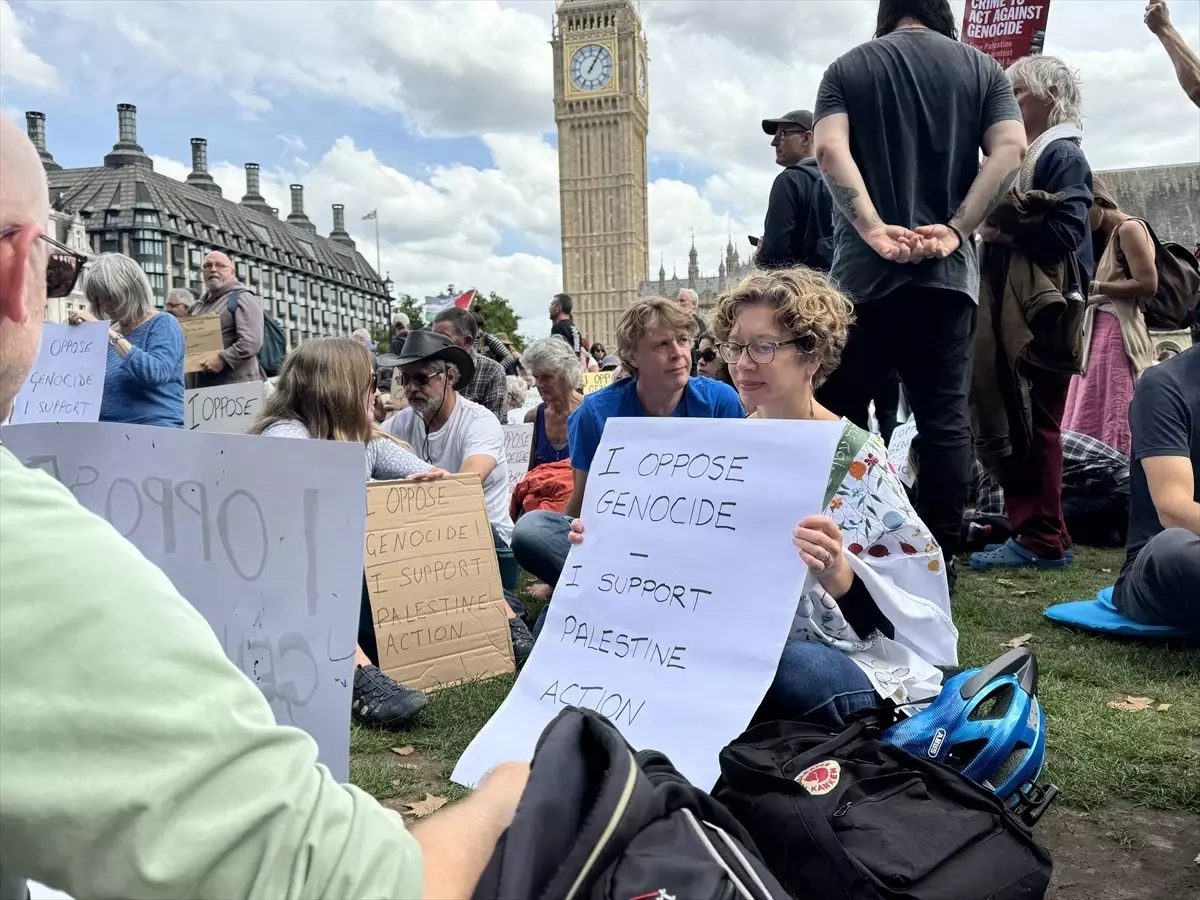 İngiltere’de İsrail ile iş yapan şirketlere yönelik eylemleriyle tanınan “Palestine Action”ın yasaklanmasına karşı çıkan “Defend Our Juries” adlı grubun çağrısıyla başkentteki Parlamento Meydanı’nda toplanan protestocular, yerel saatle 13.00’te eylemlerine başladı.