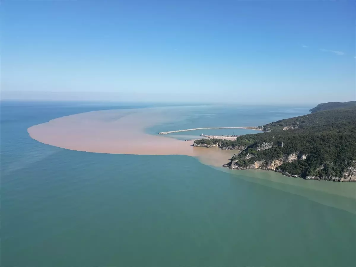Kentte 2 gün boyunca etkili olan yağışın ardından Bartın Irmağı’ndan akan çamurlu su, Boğaz mevkisinden Karadeniz’e döküldü.
