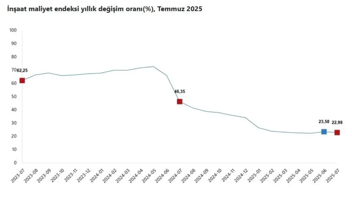 TÜRKİYE İstatistik Kurumu (TÜİK), temmuz ayında inşaat maliyetinin yıllık yüzde 22,98, aylık yüzde 1,41 arttığını açıkladı.