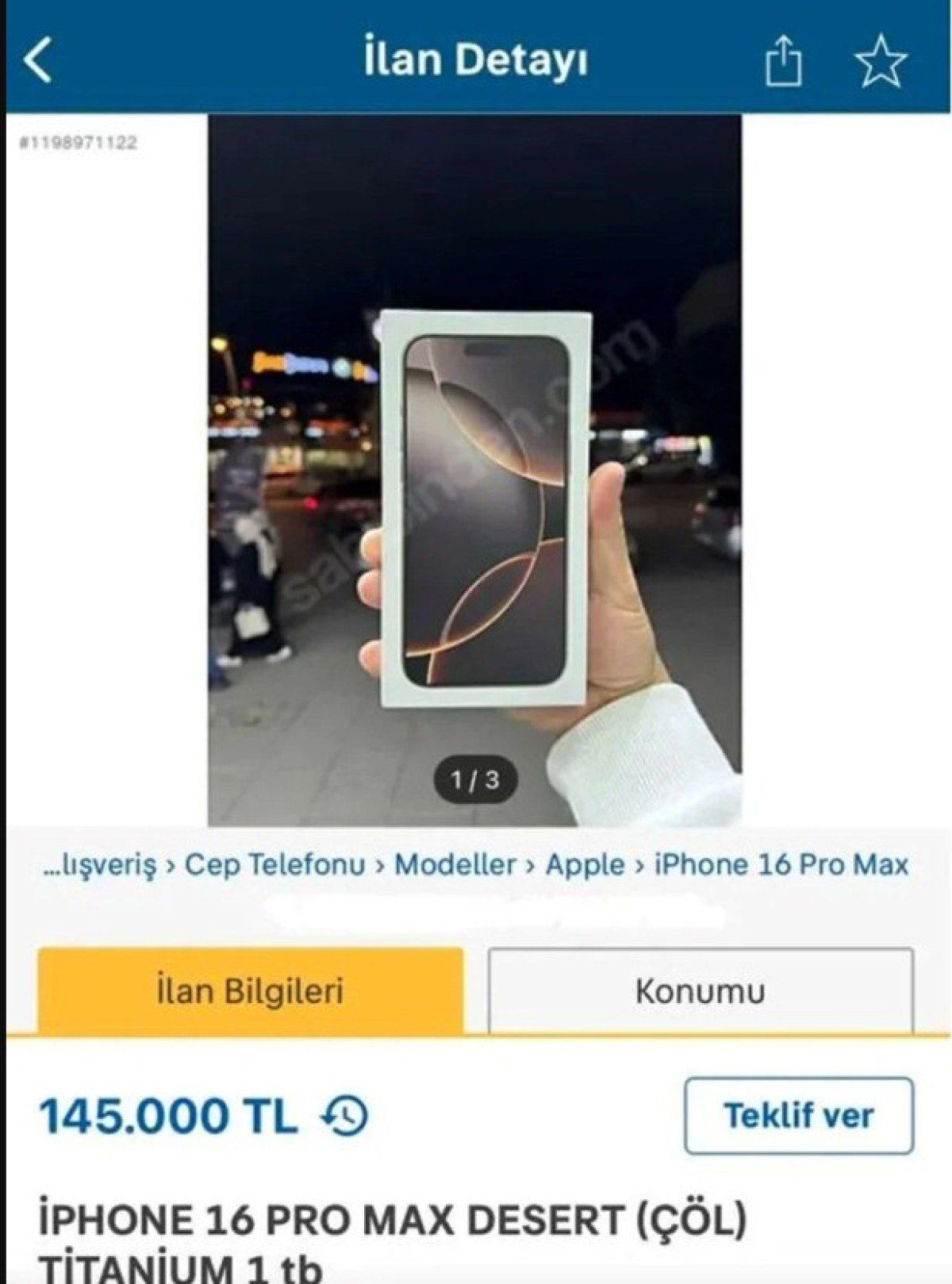 Beklemek istemeyenler ise soluğu karaborsa telefoncularda alıyor. Telefoncular fiyatı 120 bin lira olan iPhone 16 Pro Max’in 1 TB’lik depolama alanına sahip versiyonunu 140-145 bin liradan satışa sunuyor.