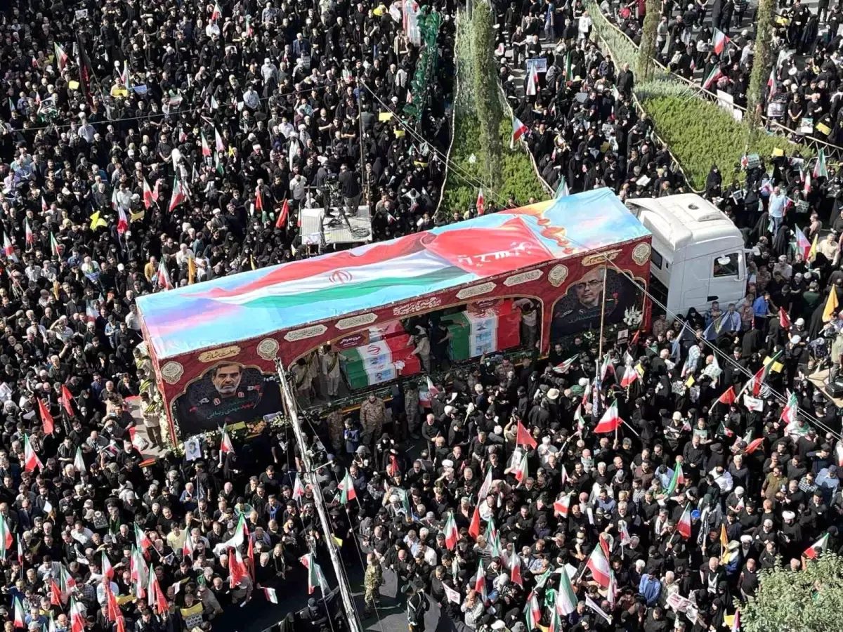 İsrail’in 13 Haziran’da İran’a karşı başlattığı ve 12 gün süren saldırılarda hayatını kaybeden, aralarında İran Genelkurmay Başkanı Muhammed Hüseyin Bakıri, Devrim Muhafızları Komutanı Hüseyin Selami ve Devrim Muhafızları Hava ve Uzay Kuvvetleri Komutanı Tuğgeneral Emir Ali Hacızade’nin yanı sıra birçok üst düzey komutan, nükleer bilim insanı, kadın ve çocuğun da bulunduğu 60 kişi için başkent Tahran’da cenaze töreni düzenlendi. Törene, İran Cumhurbaşkanı Mesud Pezeşkiyan, Dışişleri Bakanı Abbas Arakçi, İran Dini Lideri Ayetullah Ali Hamaney’in danışmanı Ali Şemhani, Kudüs Gücü Komutanı İsmail Kaani, Meclis Başkanı Muhammed Bakır Kalibaf ve çok sayıda siyasi ve askeri yetkili katıldı.