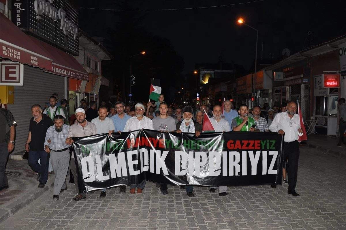 İran'ın başkenti Tahran'da suikaste uğrayan Hamas Siyasi Büro Başkanı İsmail Heniyye için Amasya'nın Gümüşhacıköy ilçesinde yürüyüş düzenlendi.