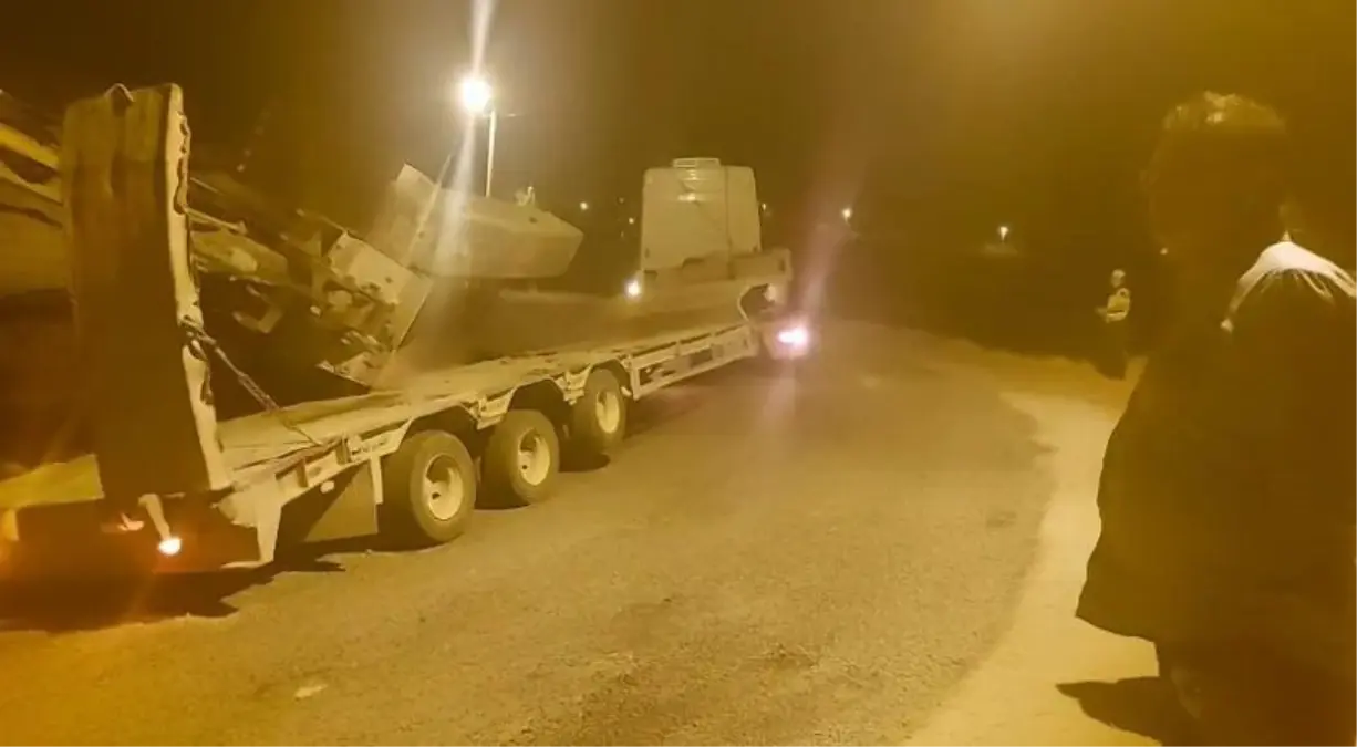 Manisa’nın Alaşehir ilçesinde tarlada başlayarak makiliğe sıçrayan yangın devam ederken, söndürme çalışmaları için bölgeye sevk edilen TIR’ın dorsesindeki iş makinesi yola devrildi. Yan yatan iş makinesinin kaldırılması için çalışma başlatıldı.