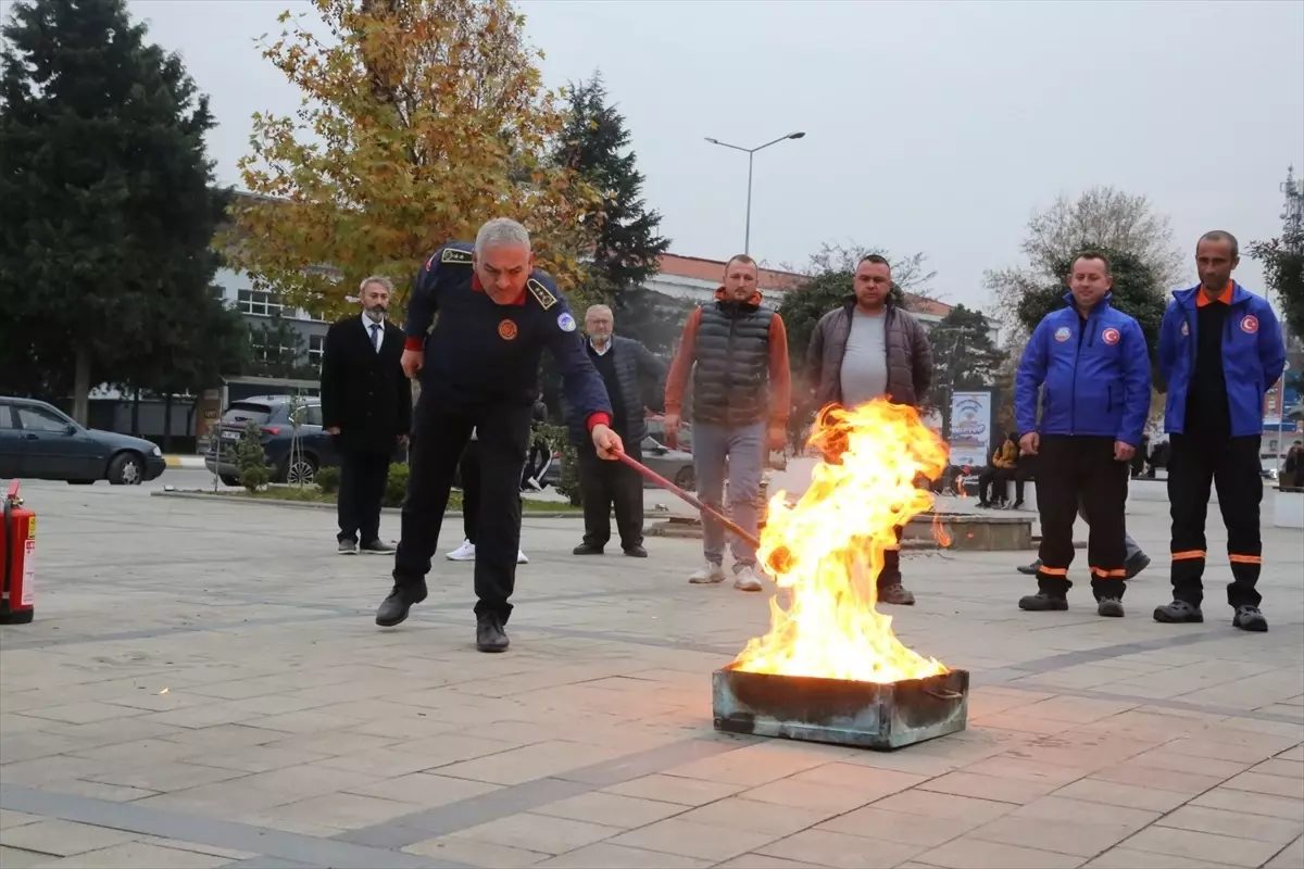 Serdivan Belediyesi personeli, yangın konusunda bilgilendirildi.