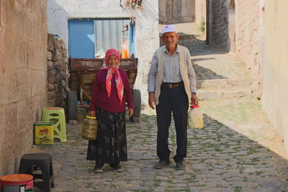 Osman Ertaş ise “Ot biçip ineklere getiriyorum. Eskiden inşaat işiyle uğraşıyordum. Paraları hanım biliyor, ben çok bilmem. 2 torunum 1 oğlum var. İlk hanımım ameliyat olduktan sonra öldü. Gezdim ve baktım ondan sonra Aniş’le evlendim. Eşim mantıyı iyi sıkar, ekmeği iyi pişirir. İneği sağıyoruz, sütünü kaynatıyoruz ve satıyoruz. Dizlerim ağrıyor. Krem çalıp, hap içiyorum” dedi.