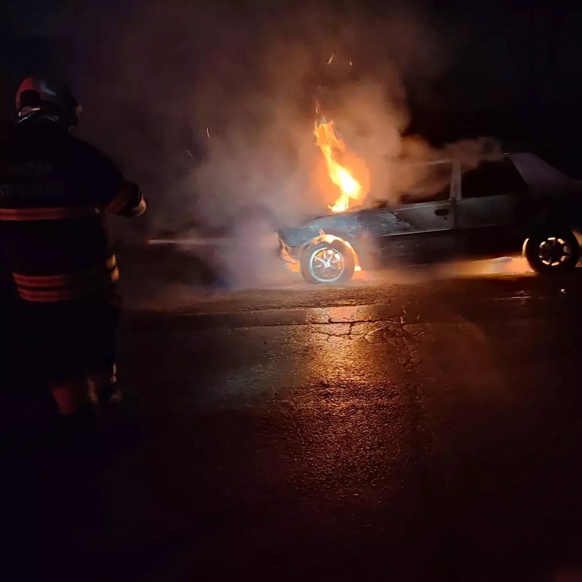 Akçay Mahallesi’nde ilerleyen, sürücüsünün ismi öğrenilemeyen 20 FN 098 otomobilin motor kısmında yangın çıktı.