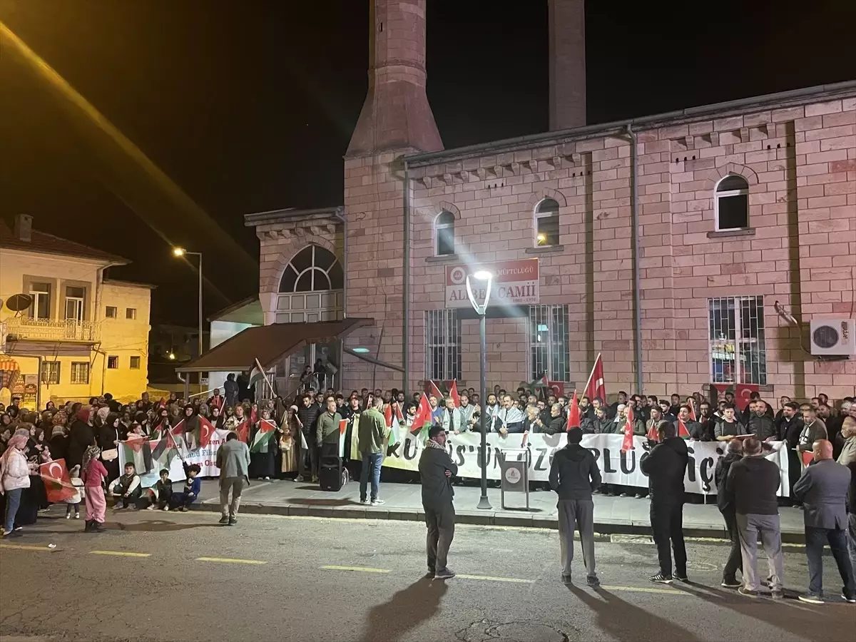 Nevşehir kent merkezindeki Alibey Camisi önünde bir araya gelen vatandaşlar, filoya saldırı düzenleyen İsrail aleyhine slogan attı.