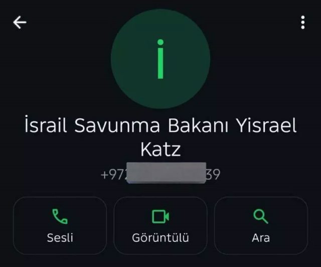 Bir Türk vatandaşı, İsrail Savunma Bakanı Yisrael Katz’ın telefon numarasını bulduğunu ve kendisiyle görüntülü arama gerçekleştirdiğini öne sürdü.