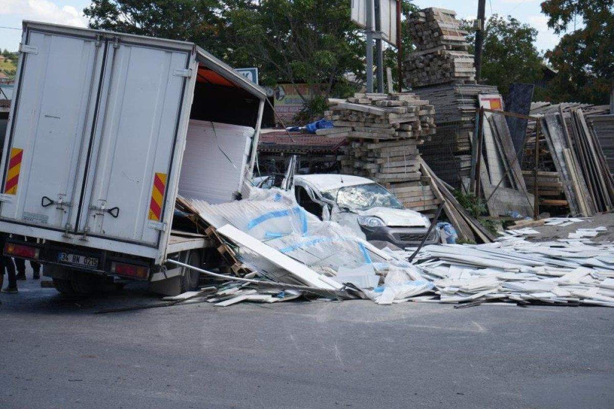 Ardından uyarı levhalarını yıkarak caddede seyreden kamyonet, hafif ticari araca yandan çarptı.